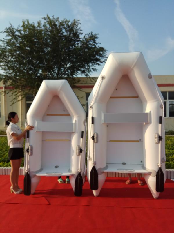 2.充氣橡皮艇材質決定性能,所謂優質的充氣橡皮船應該具備哪些特點呢?所謂“優質”,其主要特征如下:首先是橡皮船材質好,充氣浮筒在使用下仍保持很好的氣密性,該浮筒與艇內充氣龍骨和底板緊密組合(海威龍公司獨家專利----充氣龍骨,充氣龍骨能在減小海水阻力的同時增加船體平衡性,保證人員及貨物安全),使充氣船橡皮船具有足夠的剛性,很好的保障堅實及行駛快速性;艇底(硬性材質底除外)選用具有PVC橡皮艇加厚的特點,PVC充氣船橡皮艇加厚會使底部破損的可能性被降至很小程度;PVC橡皮艇加厚型的會使充氣浮筒被分隔成多個獨立氣室,分隔設置有很高的氣密性,在個別氣室破損時,其他部分仍保持足夠浮力,PVC橡皮艇加厚型的具有很好的抗沉性;根據浮力和分隔要求,當一氣室或相鄰兩氣室,甚至全部氣室同時破損時,加厚橡皮艇仍有一定的浮力可供及時應急處理;由于有足夠浮力,在PVC加厚橡皮艇已處于最大載重(使用安全上的限定)時,即使有水灌滿整個艇艙,仍能浮于水面。